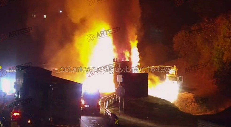 Carreta com 39,5 toneladas de madeira pega fogo na SP-310 em Corumbataí. Incidente não deixa feridos, mas causa interdição e congestionamento de 11 km. Para mais informações, acompanhe o DE São Carlos e Araraquara.