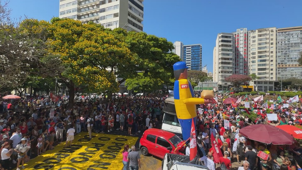 Manifestantes vão às ruas de BH contra a PEC da Blindagem e a anistia. Protesto com líderes políticos e artistas mineiros exige defesa da democracia.