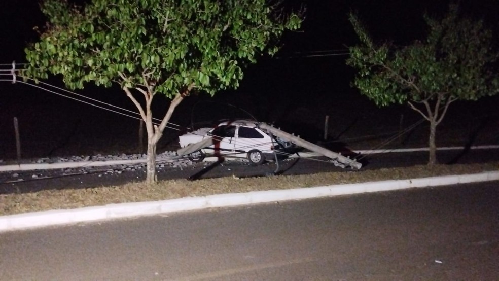 Carro bate em poste e deixa duas cidades sem energia no Diário do Estado. Acidente provoca ‘efeito dominó’ na rede elétrica. Motorista tem ferimentos leves.