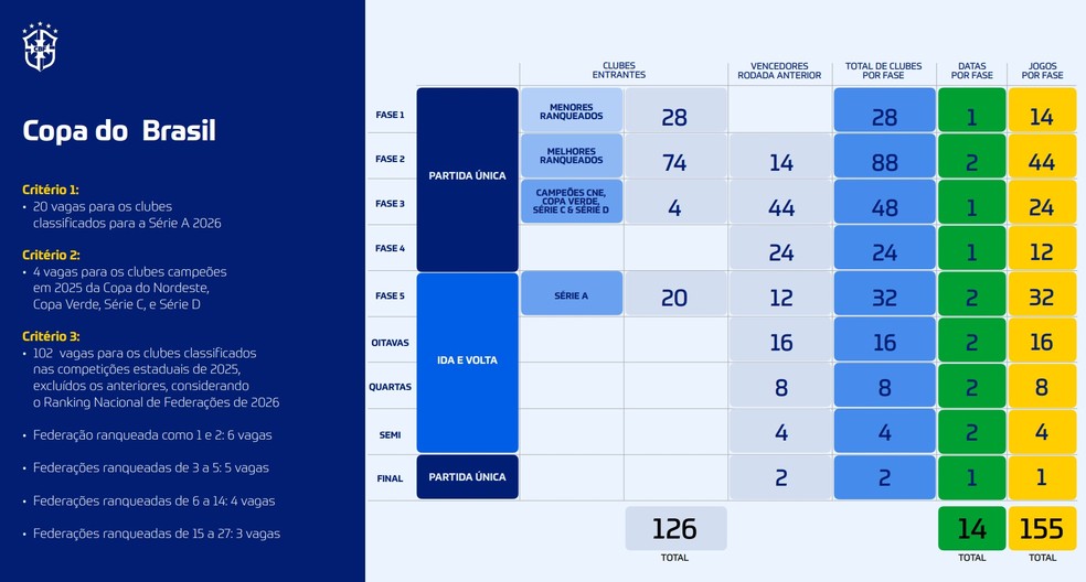 “Copa do Brasil 2026: ampliação do torneio para 126 clubes e garantia de todos da Série A. Saiba quem pode se classificar com novo critério de vagas.”