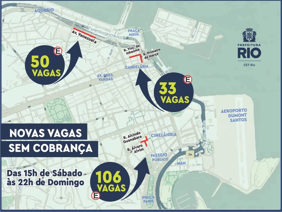 Prefeitura do Rio abre 189 novas vagas de estacionamento gratuito no Centro aos fins de semana. Medida visa fortalecer turismo e cultura locais.