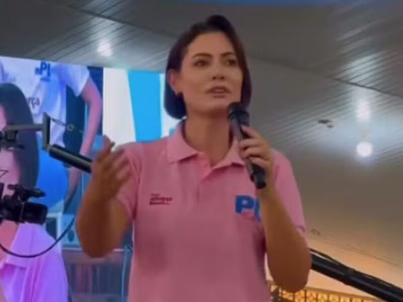 Michelle Bolsonaro fez duras críticas ao ex-presidente Lula e à primeira-dama Janja em evento do PL Mulher em Goiás.