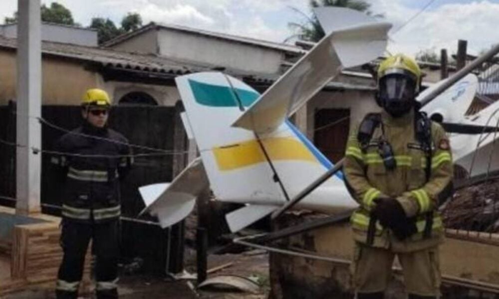 Piloto de 60 anos sobrevive a queda de monomotor que destrói casa no Setor Santos Dumont, em Goiânia