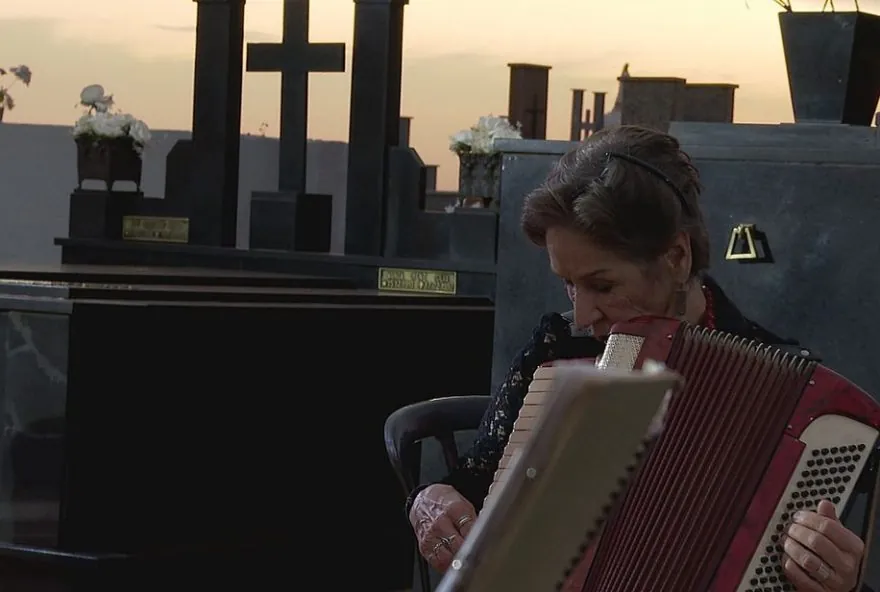 Nem palco, nem teatro, nem praça. Há 50 anos, o lugar da música para a família Tiso, em Três Pontas (MG), é o cemitério da cidade. Diante do túmulo familiar, músicos de diferentes gerações se reúnem para manter uma promessa: transformar luto em serenata.
