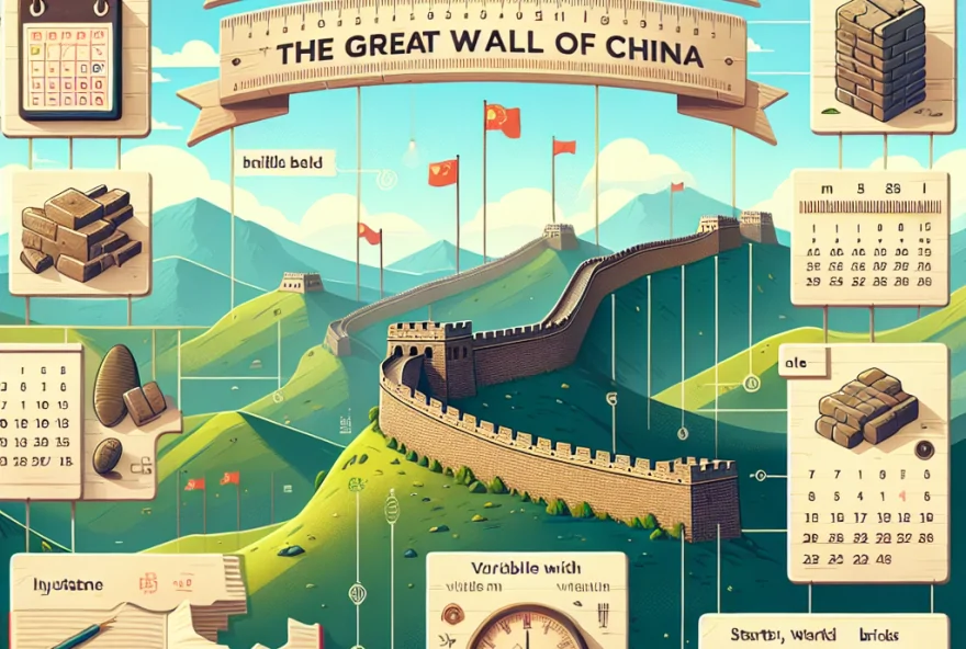 4. Altura: A altura média da Grande Muralha da China é de cerca de 7 a 8 metros, mas em alguns trechos ela pode atingir até 14 metros de altura. Além disso, em determinados pontos, torres de vigia foram construídas para permitir uma visão ampla dos arredores.