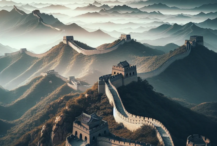 Localizada na China, a Grande Muralha é uma das construções mais extraordinárias da história da humanidade. Com mais de 21 mil quilômetros de extensão, ela foi erguida ao longo de vários séculos para proteger o Império Chinês de invasões de povos nômades. Além de sua imponência, a Grande Muralha é também um marco de engenharia, construída utilizando principalmente tijolos e pedras. O ponto mais visitado da muralha é a seção de Badaling, próxima a Pequim, que recebe milhões de turistas todos os anos.