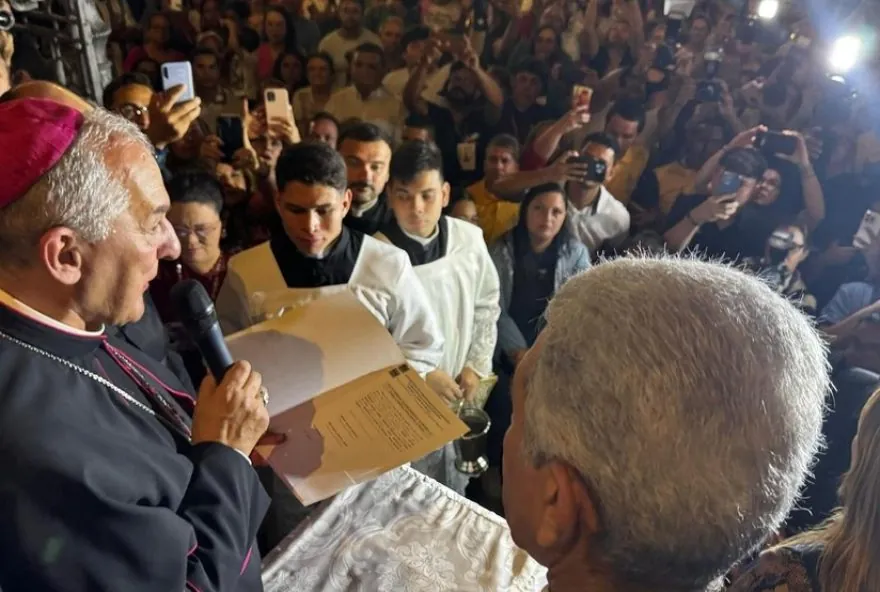 Ao fim da celebração, por volta das 19h, a Diretoria da Festa, o clero, convidados e representantes do governo do estado e da prefeitura participam do momento mais esperado da noite: a iluminação da fachada da Basílica. O ato simbólico marca oficialmente o início da Festividade Nazarena de 2025.