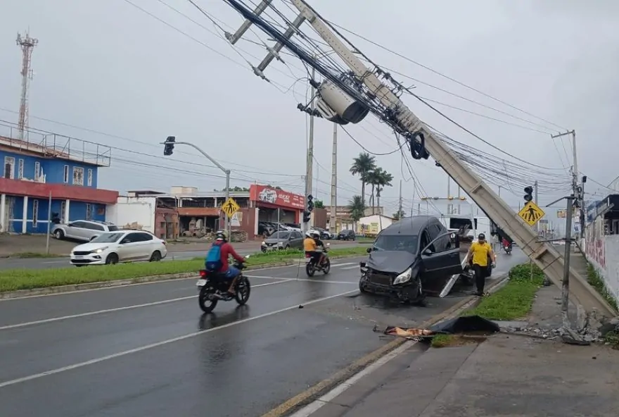 Na madrugada desta terça-feira (25), um carro colidiu contra um poste de alta-tensão na MA-203, conhecida como estrada do Araçagi, em São José de Ribamar, na Grande São Luís.