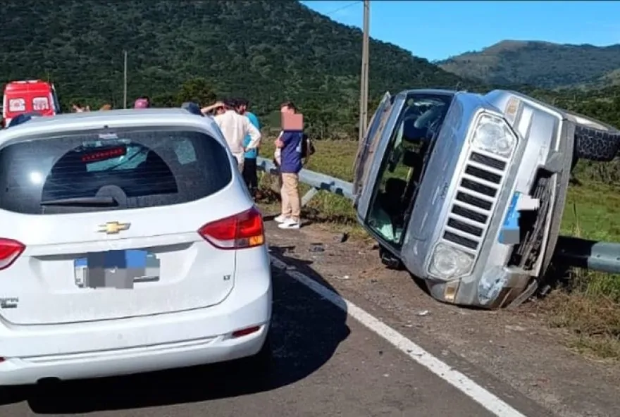 Na tarde deste domingo (20), um acidente envolvendo quatro veículos resultou em feridos e na interdição total da SC-110 em Urubici, na região da Serra de Santa Catarina. Segundo informações da Polícia Militar Rodoviária (PMRv), pelo menos seis pessoas foram levadas ao hospital. A colisão ocorreu no km 395 da rodovia e até as 16h15, a via permanecia interditada.