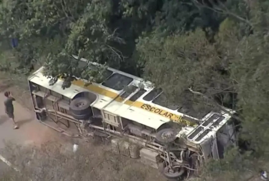 O Corpo de Bombeiros socorreu uma vítima com ferimento na cabeça e outra com escoriações no braço. Ônibus escolar tombou na Rodovia SP-214 em Embu-Guaçu e deixou 10 feridos. O Metrópoles tentou contato com a Secretaria da Segurança Pública (SSP) e com a Prefeitura de Embu-Guaçu para mais informações sobre o acidente. As autoridades ainda não se pronunciaram sobre o ocorrido.