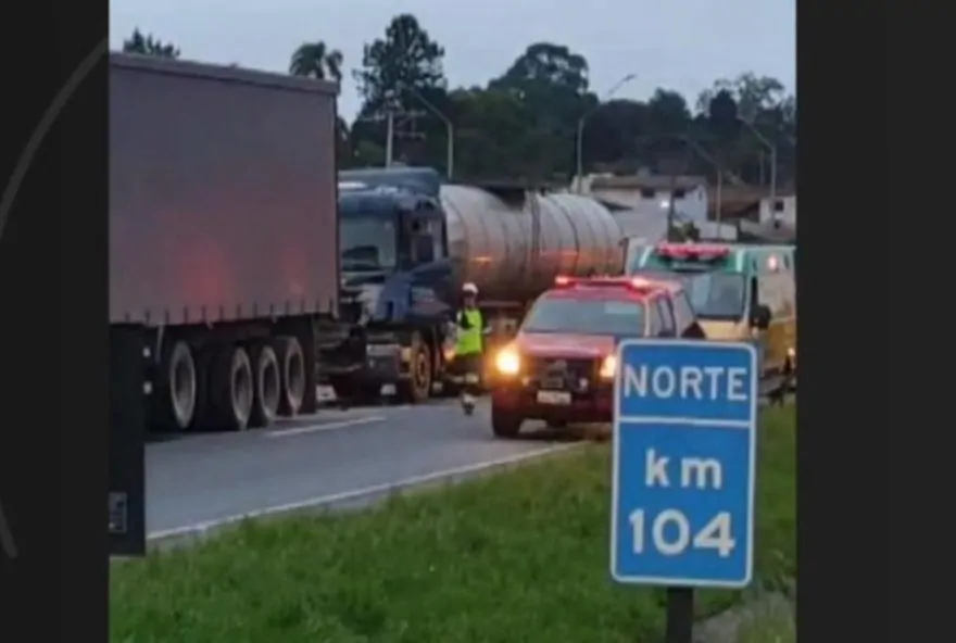 Um acidente envolvendo três caminhões foi registrado no começo da noite desta segunda-feira (25) na BR-116, no Contorno Leste, em São José dos Pinhais, na Região Metropolitana de Curitiba.