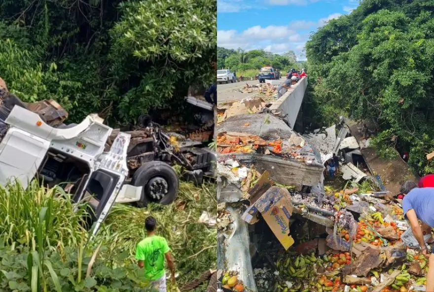A cena do caminhão destruído e da carga de frutas espalhada pela estrada chamou a atenção de quem passava pelo local. A magnitude do acidente evidencia a importância de medidas de segurança no trânsito e o cuidado que os condutores devem ter ao trafegar por vias de grande circulação. A PRF está investigando as circunstâncias que levaram à saída da pista e à queda do veículo, a fim de determinar as causas do acidente e evitar situações semelhantes no futuro.