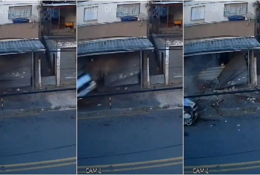 Um carro desgovernado invadiu a calçada, destruiu a porta de um comércio e deixou pessoas feridas durante a madrugada de sábado (30) no bairro Jardim Santa Gertrudes, em Jundiaí (SP). Uma câmera de segurança registrou o acidente.