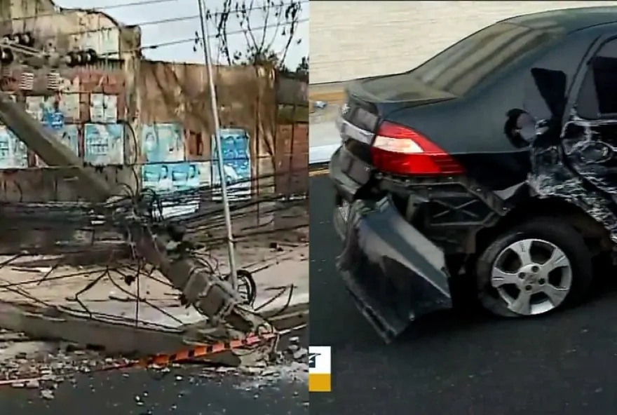 Com o impacto da batida, o poste se partiu ao meio e caiu sobre o meio-fio da avenida, deixando o local bastante danificado. Testemunhas relataram que o motorista perdeu o controle do veículo e acabou batendo com a lateral do carro no poste, que ficou totalmente destruído.