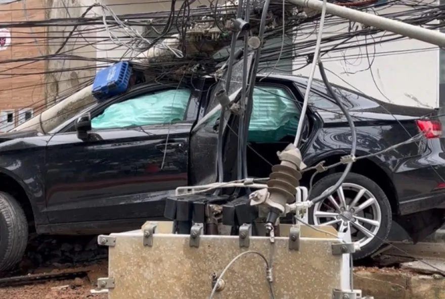 Segundo a Polícia Militar, o motorista contou que a pista estava molhada, o que fez com que ele perdesse o controle da direção ao fazer uma curva. Em seguida, o automóvel acabou colidindo no poste. Ele seguia com duas passageiras. Ninguém ficou ferido.