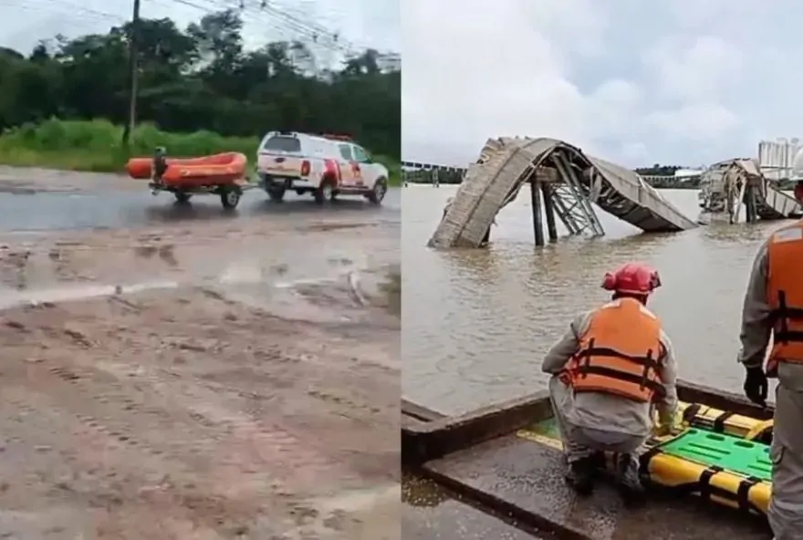 O impacto da batida fez a estrutura ceder sobre a Baía do Capim. Veja imagens