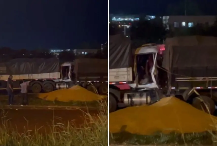 Um dos veículos estava carregado com 38 toneladas de milho e a carga se espalhou