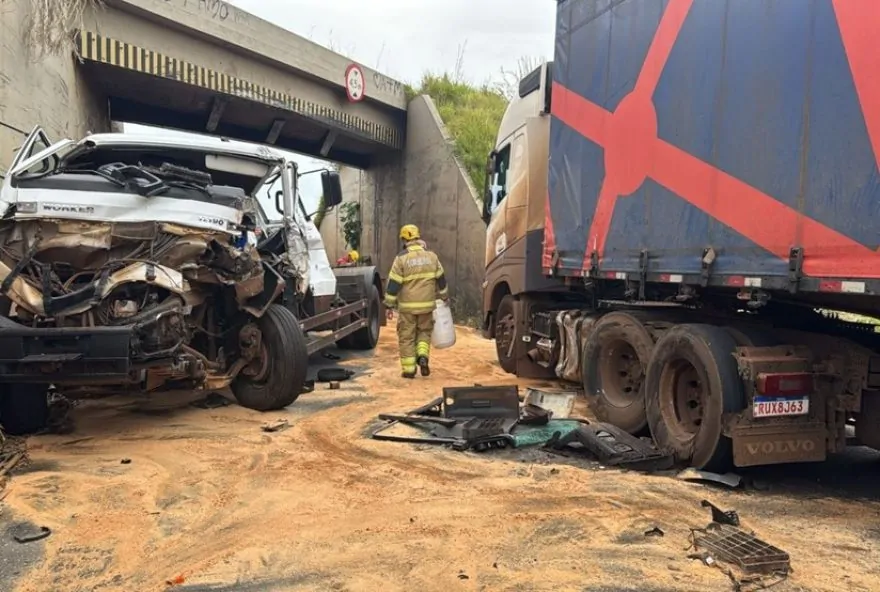 Acidente entre carreta e caminhão no pontilhão da BR-365 em Uberlândia deixa um ferido