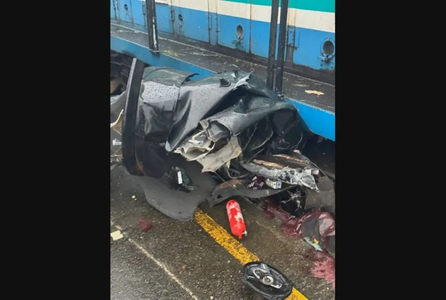 Acidente entre carro e trem deixa uma pessoa morta e outra ferida grave em Magé. Segundo informações da SuperVia, o acidente ocorreu quando o carro atravessou de forma irregular a via férrea por uma passagem de nível não autorizada, sendo atingido pelo trem próximo à estação Suruí.