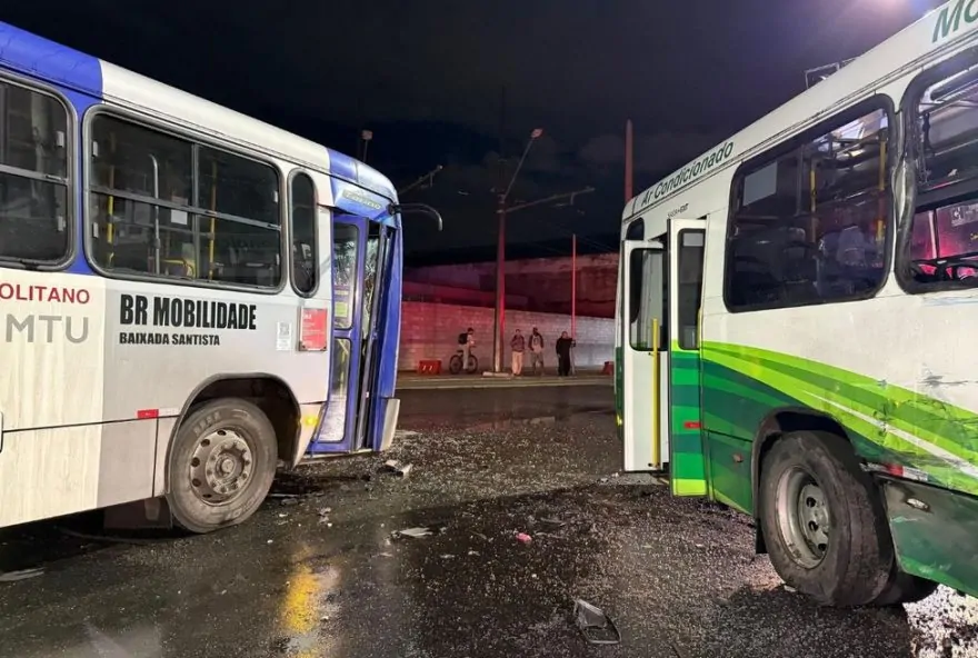 Oito passageiros ficaram feridos após uma colisão entre dois ônibus na manhã desta quinta-feira (29), em Santos, uma cidade no litoral de São Paulo. Os dois motoristas tiveram ferimentos leves.