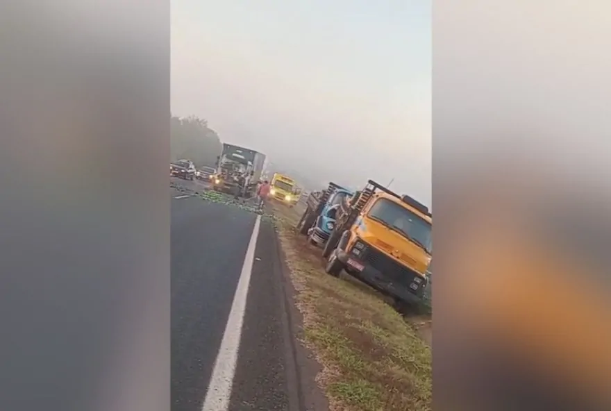 Acidente entre três caminhões deixa o trânsito lento na BR-050 em Uberlândia