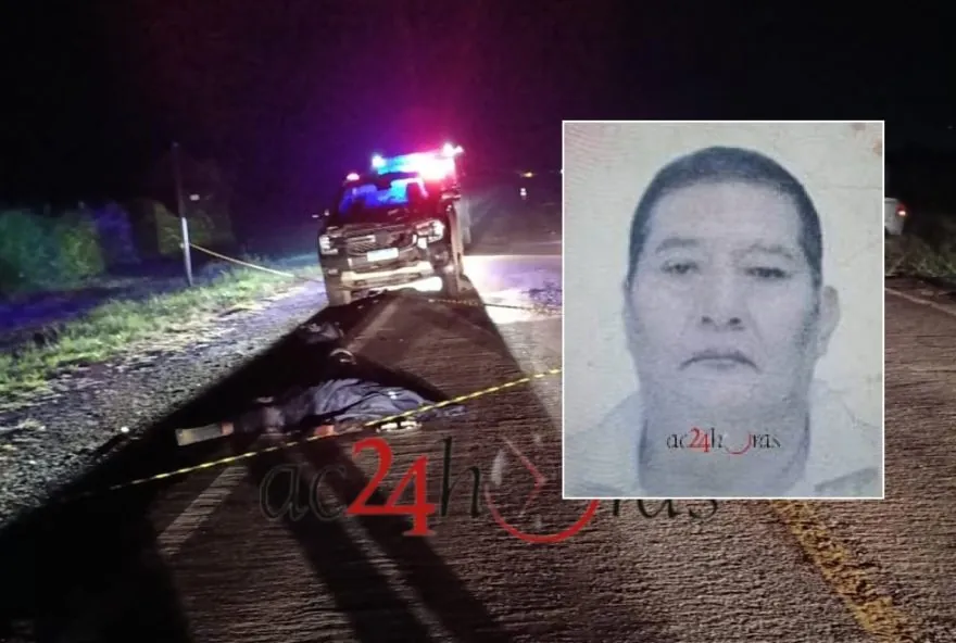 Acidente fatal ocorreu na BR-317, em Capixaba, onde o boliviano Paulino Aliaga, 59 anos, faleceu após colisão entre caminhonete e moto.