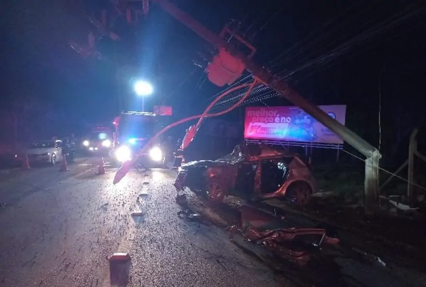 Segundo os bombeiros, a região ficou sem energia elétrica devido aos danos causados ao poste. A Celesc mencionou que equipes trabalharam ao longo da madrugada para restabelecer o fornecimento de eletricidade, o que foi concluído às 8h30 do sábado.
