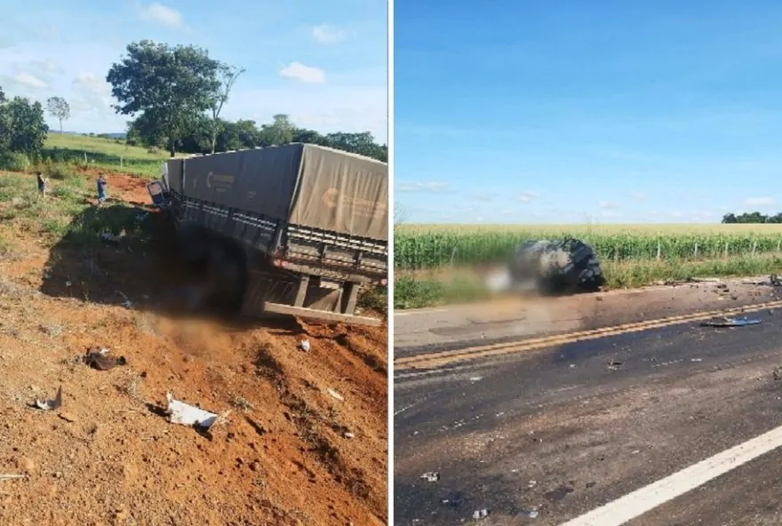 Um acidente entre uma carreta e um carro matou duas pessoas na GO-217, km 12, em Piracanjuba, região sul de Goiás. Segundo o Comando de Policiamento Rodoviário da Polícia Militar, o carro tentou realizar ultrapassagem e bateu de frente com caminhão. O condutor do carro, de 50 anos, e o passageiro do caminhão, de 33, morreram no local.