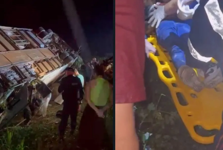 Passageiro morre e 10 pessoas ficam feridas, após ônibus capotar na BR-155, no Pará