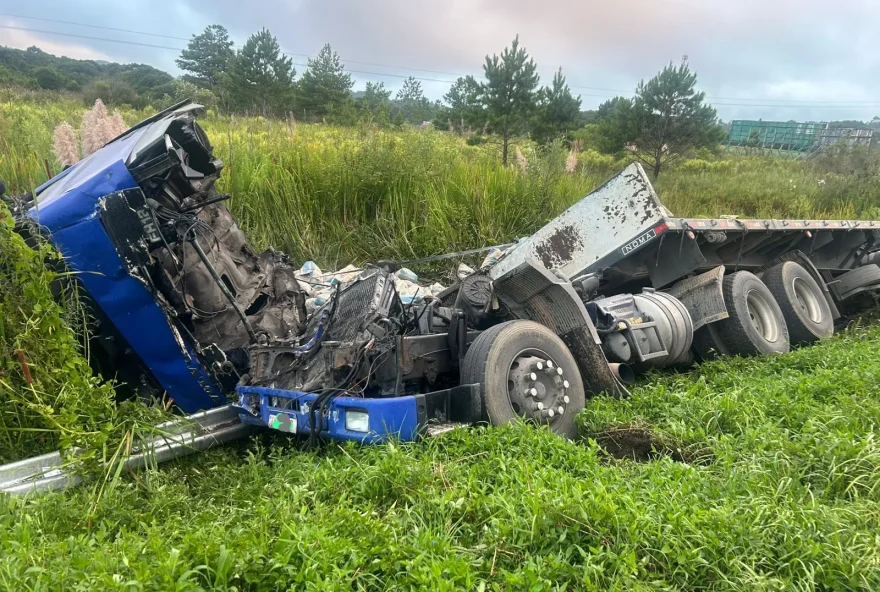 Uma colisão traseira entre duas carretas resultou em um grave acidente na BR-277, em Balsa Nova, região metropolitana de Curitiba. O acidente aconteceu próximo ao quilômetro 145, no sentido interior do Paraná. Segundo a Polícia Rodoviária Federal (PRF), uma das carretas tombou no acostamento após a colisão, deixando a cabine severamente danificada. Apesar da gravidade, o tráfego na região não foi interrompido e seguiu fluindo sem grandes problemas. Três pessoas sofreram ferimentos leves e foram atendidas no local, sem risco de vida.