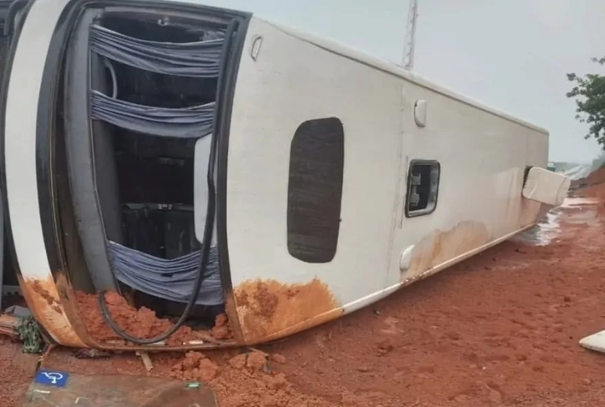 Passageiro morre e motorista fica ferido após ônibus tombar na BR-135