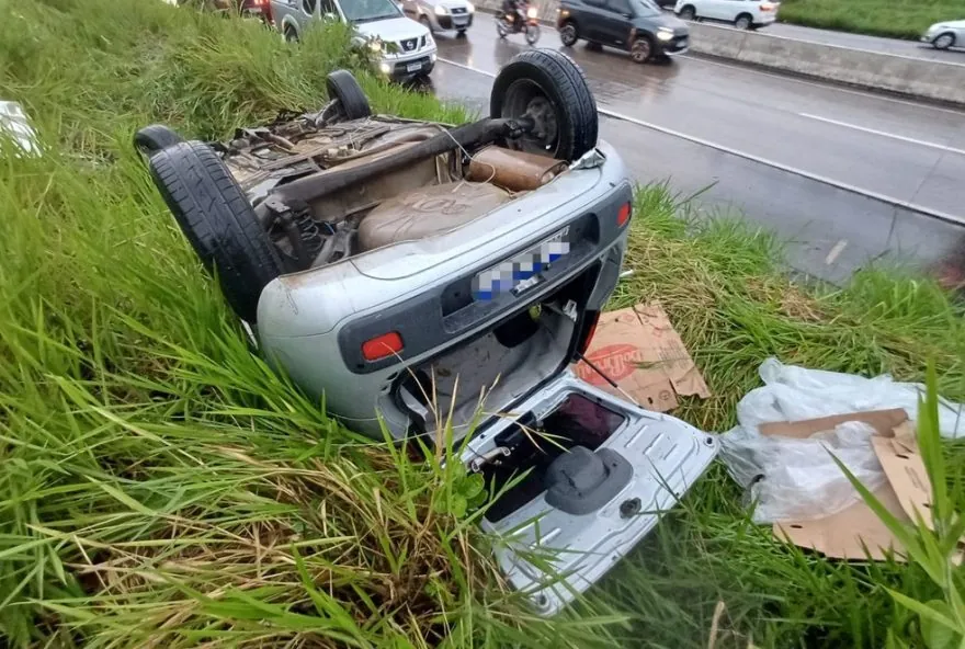 Um carro capotou enquanto transitava pela BR-232, no município de Vitória de