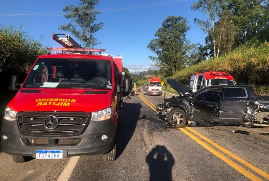 Duas mulheres morreram e outras quatro pessoas ficaram feridas após um acidente na BR-265, em Barbacena, na tarde de sexta-feira (11). Segundo informações da Polícia Militar Rodoviária (PMRv), testemunhas contaram que o motorista da caminhonete, que seguia de Barbacena para Barroso, tentou ultrapassar um caminhão e acabou batendo em dois carros de passeio que vinham na direção contrária. A caminhonete bateu de frente com um dos carros de passeio, que foi lançado para fora da pista. A motorista, de 56 anos, e a passageira, de 49, ficaram presas às ferragens e morreram no local.