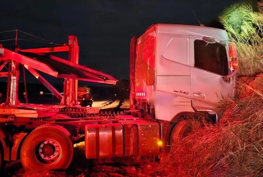 Motorista da carreta perdeu o controle e invadiu a pista contrária, segundo o Corpo de Bombeiros. Batida ocorreu na madrugada deste sábado (12) em Uberlândia.