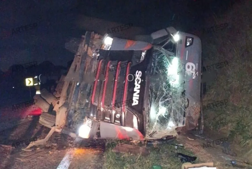 Uma carreta que transportava 47 toneladas de cana-de-açúcar tombou na Rodovia dos Bandeirantes (SP-348), na noite desta quarta-feira (10), em Limeira (SP). O motorista não teve ferimentos.