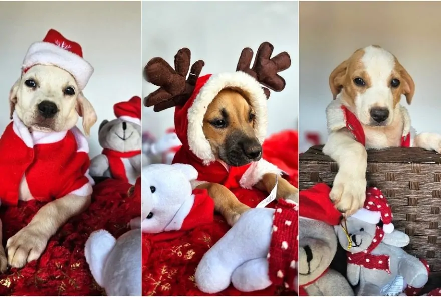 FOTOS: cães se tornam modelos em ensaio de Natal para incentivar a adoção responsável em Goiânia