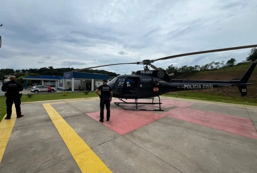 Helicóptero do SAER em atendimento a acidente com moto aquática em Caxambu do