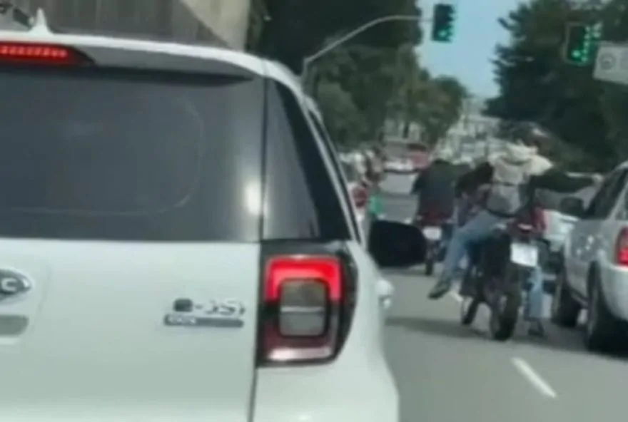 Nas imagens é possível ver o adolescente, em cima de uma motocicleta, se