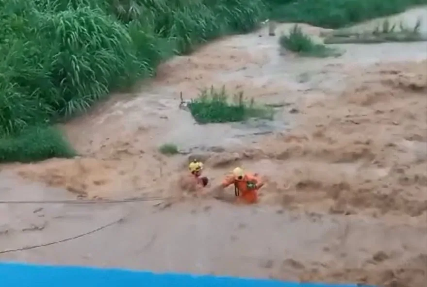 Veja o resgate do adolescente que ficou preso dentro do rio durante a cheia em Além