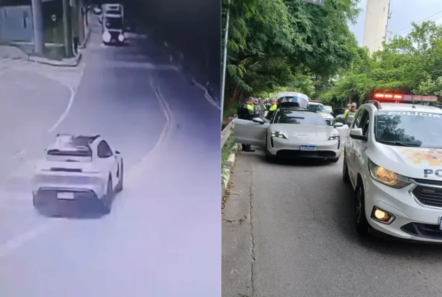De acordo com a Polícia Militar, a abordagem ocorreu durante um policiamento de trânsito, quando os agentes tentaram parar uma Porsche Taycan híbrida. O motorista não obedeceu à ordem e iniciou a fuga, que durou alguns minutos.