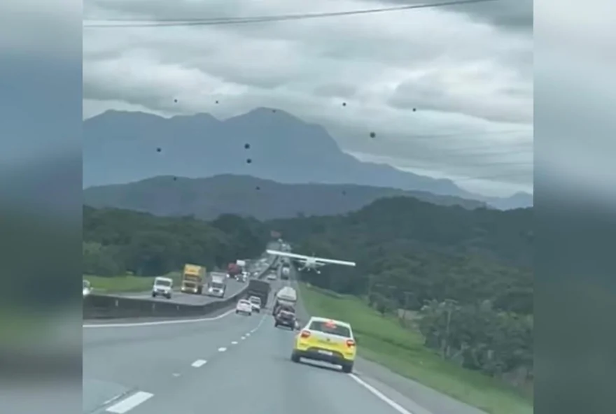Um avião monomotor precisou fazer um pouso forçado em meio a carros e caminhões na BR-101 em SC. O registro do incidente foi feito em Garuva, no Norte catarinense, neste sábado. Segundo a Arteris Litoral Sul, a concessionária responsável pelo trecho, não houve feridos no ocorrido.