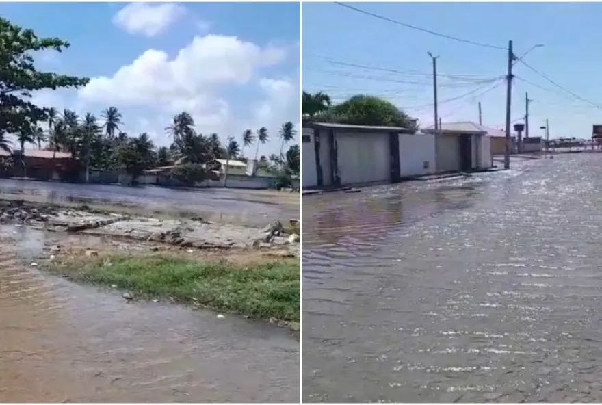 A Prefeitura de Aquiraz confirmou, em nota, que o alagamento foi causado pela maré alta e informou que está realizando a abertura controlada do canal para evitar danos maiores e permitir que as barracas retomem as atividades.