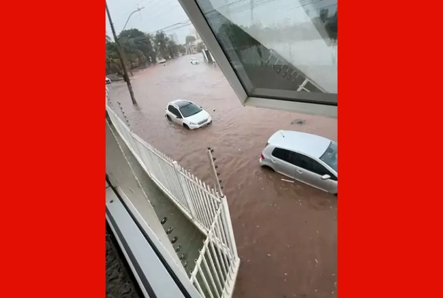 VÍDEO: Carros ficam submersos em enxurrada após forte chuva alagar ruas