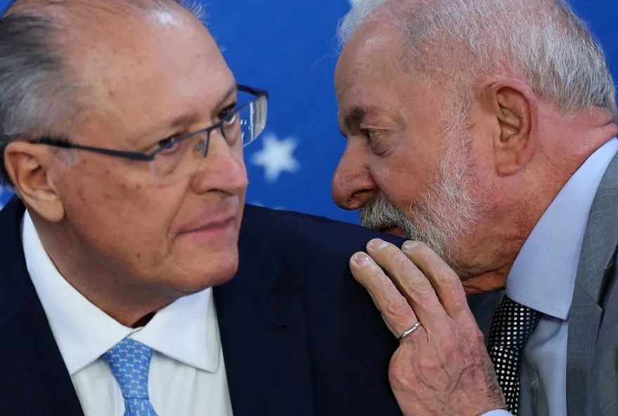Lula e Alckmin participam de cerimônia no Palácio do Planalto, em Brasília, em 14 de julho de 2025. — Foto: Reuters/Adriano Machado