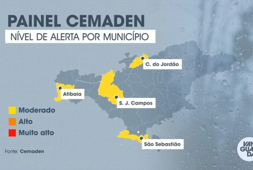 O Centro Nacional de Monitoramento e Alertas de Desastres Naturais (Cemaden) emitiu um alerta para possíveis riscos de deslizamentos de terra devido às chuvas em quatro cidades do Vale do Paraíba e região. As cidades de Atibaia, Campos do Jordão, São José e São Sebastião estão sob alerta devido à chuva intensa que tem colocado essas localidades em estado de atenção nos últimos dias.