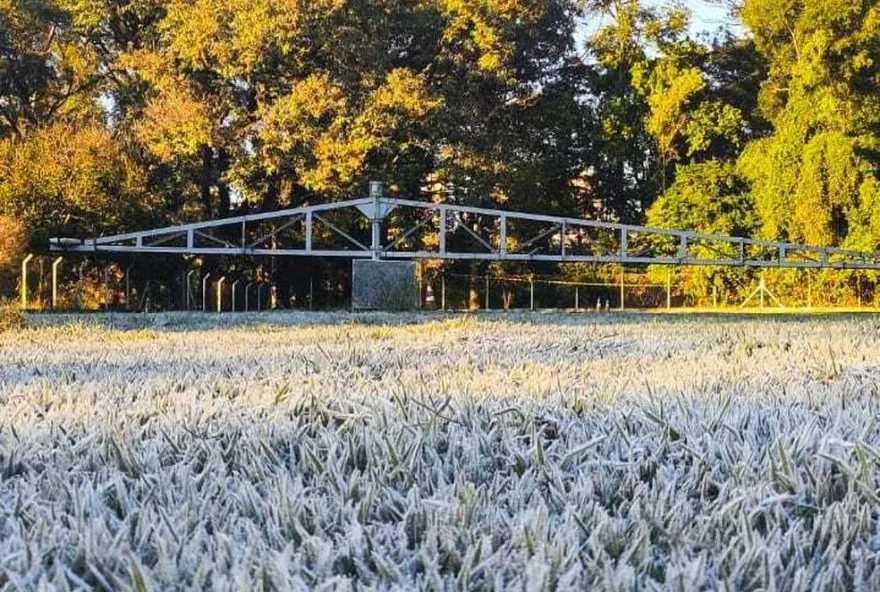 Gramadão do setor de Máquinas Agrícolas da Escola Superior de Agricultura ‘Luiz de Queiroz’ em Piracicaba com geada em 2025 — Foto: Áureo Santana/ Departamento de Biosistemas da Esalq/USP