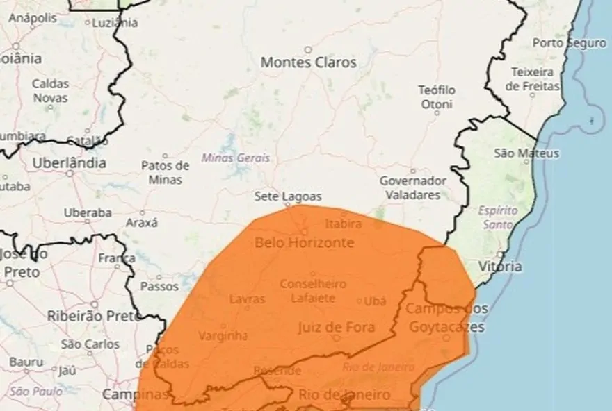 O Instituto Nacional de Meteorologia (Inmet) emitiu um alerta de perigo de tempestade para 47 cidades do Leste de Minas. Começando às 9h desta quarta-feira (13), o alerta laranja foi classificado como “Perigo”, o que significa que podem ocorrer chuvas entre 30 e 60 milímetros, podendo chegar aos 100 mm por dia e ventos intensos variando de 60 a 100 km.