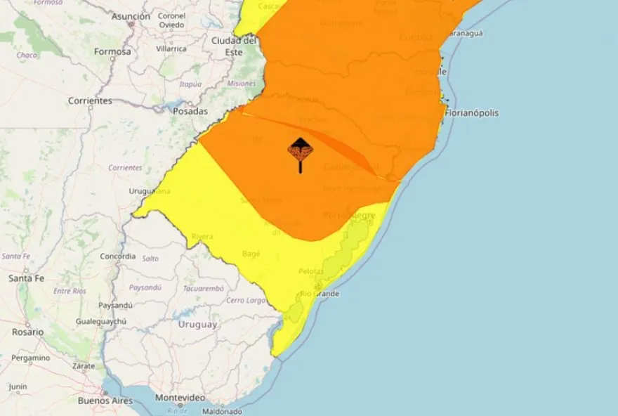 Há possibilidade de chuva forte, ventos de até 100 km/h e queda de granizo em diversas regiões, com um alerta de risco alto para alagamentos e destelhamentos na região da Costa Doce e Região Metropolitana de Porto Alegre.