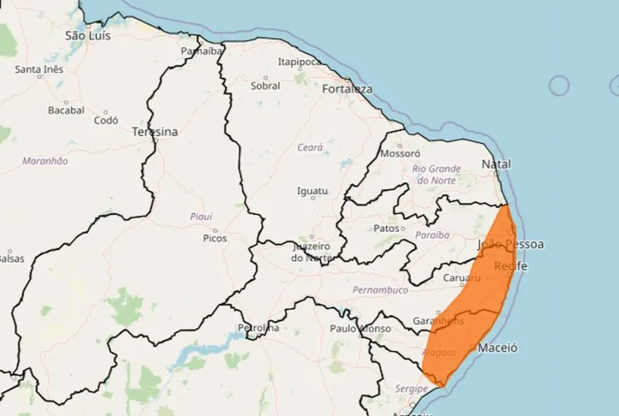 O Instituto Nacional de Meteorologia (Inmet) emitiu um novo alerta laranja de ‘perigo’ para 43 municípios do Agreste, Sertão e Mata Sul de Pernambuco. Essa notificação, válida até às 23h59 da quarta-feira (21), destaca que a chuva deve variar entre 30 a 60 milímetros por hora, podendo atingir até 100 milímetros por dia. Com essa previsão, há risco de alagamentos, deslizamentos de encostas e transbordamento de rios.