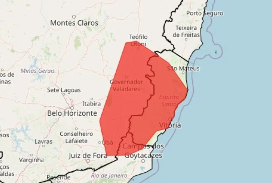 Minas Gerais está sob dois alertas vermelhos de grande perigo para acumulado de chuva, emitidos pelo Instituto Nacional de Meteorologia (Inmet), com risco elevado de alagamentos, transbordamentos de rios e deslizamentos de encostas em diversas regiões do estado. O primeiro alerta, que começou ao meio-dia desta segunda-feira (19) e segue até 23h59 de terça-feira (20), atinge 76 cidades, principalmente nas regiões da Zona da Mata, Vale do Rio Doce e Região Metropolitana de Belo Horizonte. A previsão indica chuva superior a 60 mm por hora ou acima de 100 mm por dia, volumes considerados extremamente elevados. O segundo alerta entra em vigor à 0h01 de terça-feira (20) e também vale até 23h59 do mesmo dia, ampliando a área de risco para 167 municípios. Além da Zona da Mata, Vale do Rio Doce e Grande BH, passam a integrar o aviso o Vale do Mucuri. Segundo o Inmet, o grau de severidade é classificado como ‘Grande Perigo’, o mais alto da escala, devido ao potencial de grandes alagamentos, enchentes, deslizamentos de encostas e impactos à segurança, especialmente em cidades com áreas de risco geológico.